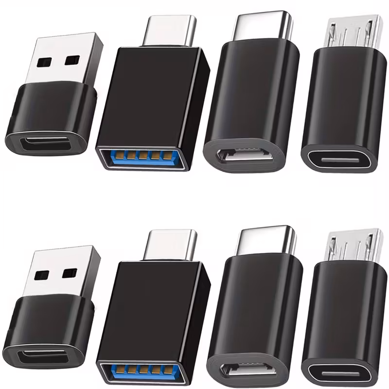 8pcs USB to USB C Adapter, USB Type C Female to USB Adapter, Micro USB to USB C Female Male Converter Connector, for Laptop Car Smartphone Headphone Mic PC