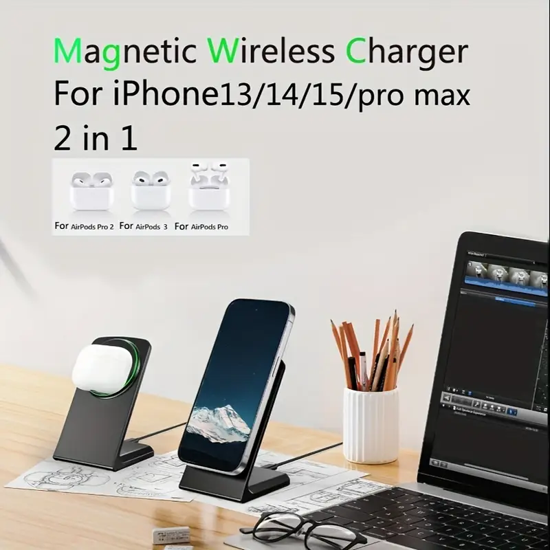 Special Features Dual charging dock (iPhone + AirPods), magnetic stand doubles as phone holder for FaceTime/desk use