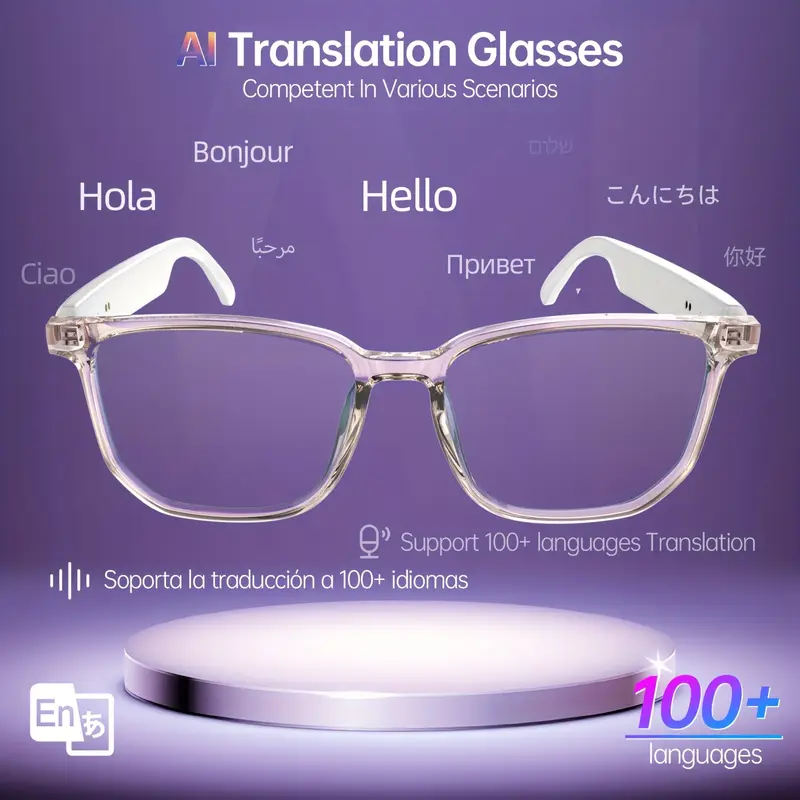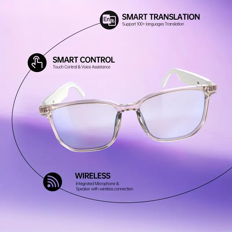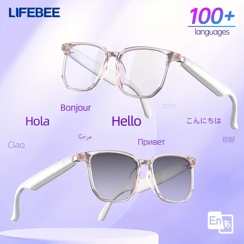 LIFEBEE Smart Glasses with 144 Languages, Low Latency Audio, Built-in Mic & Speakers, AI Voice Assistant