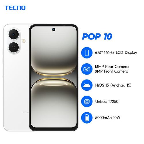 With an IP64 rating, the Tecno POP10 is designed to handle everyday dust and splashes,